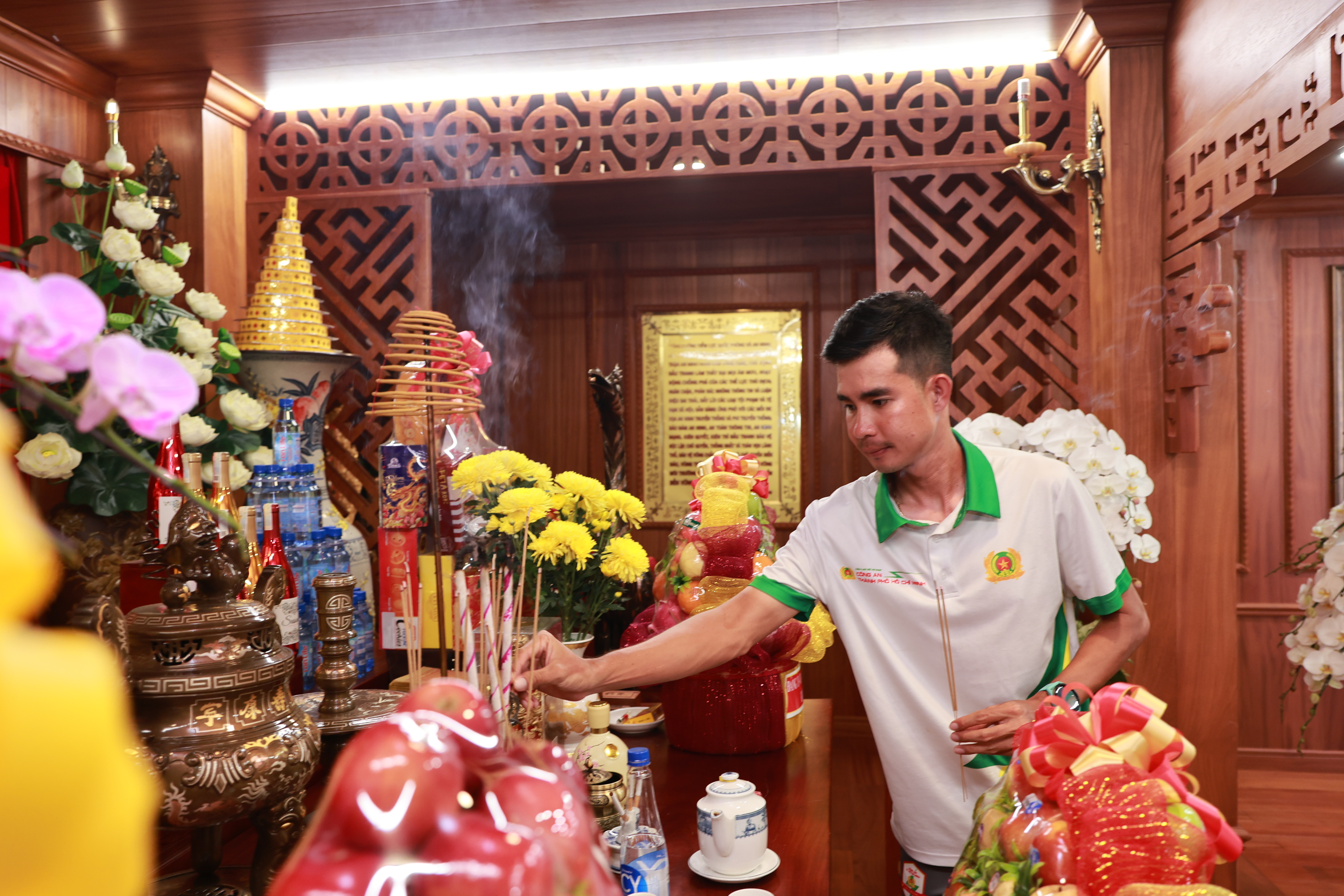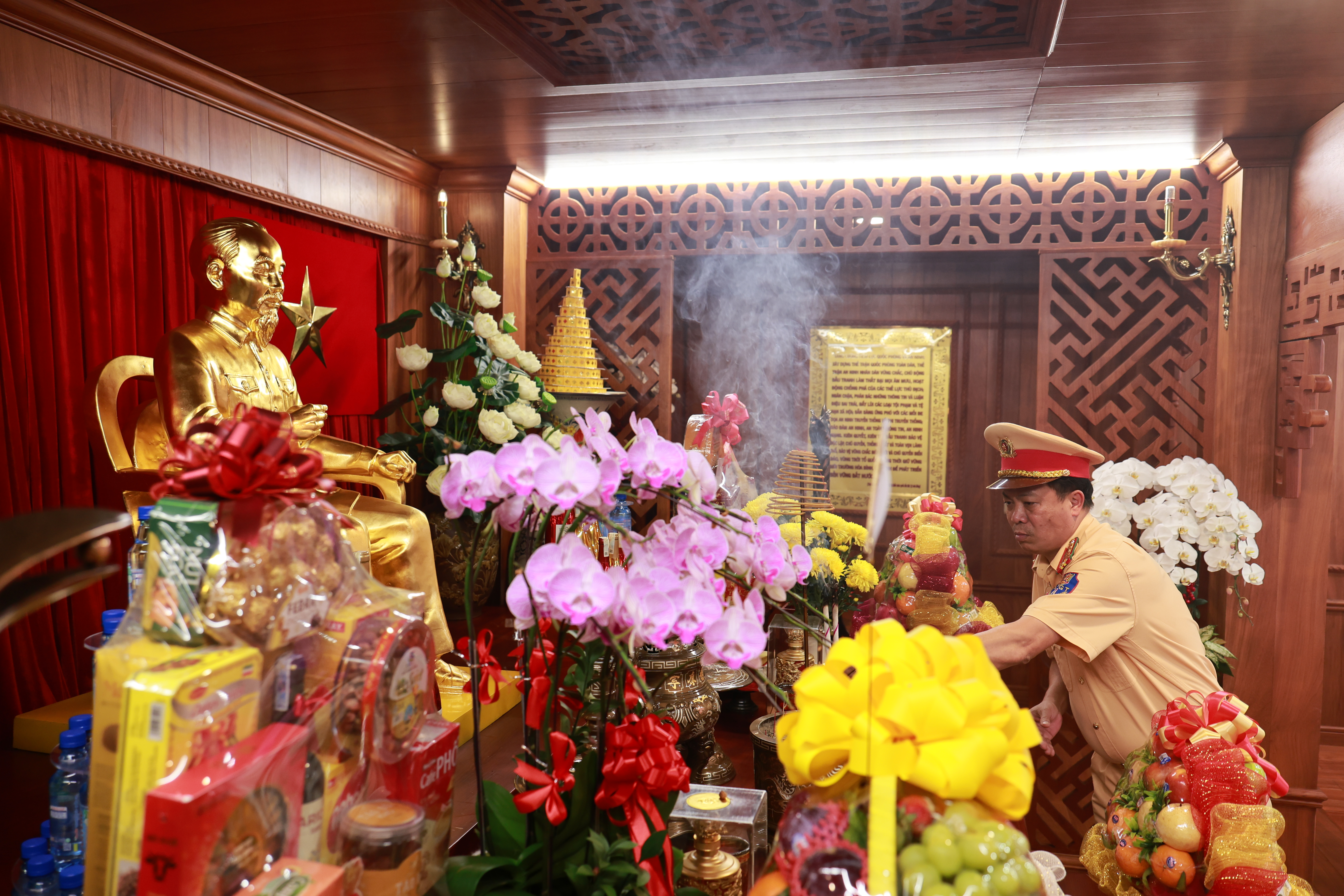 Tập thể BCH Phòng CSGT, Ban lãnh đạo, Ban huấn luyện CLB Xe đạp Thể thao CATP dâng hương, dâng hoa báo công với Bác Hồ tại Nhà tưởng niệm Chủ tịch Hồ Chí Minh trong khuôn viên CATP