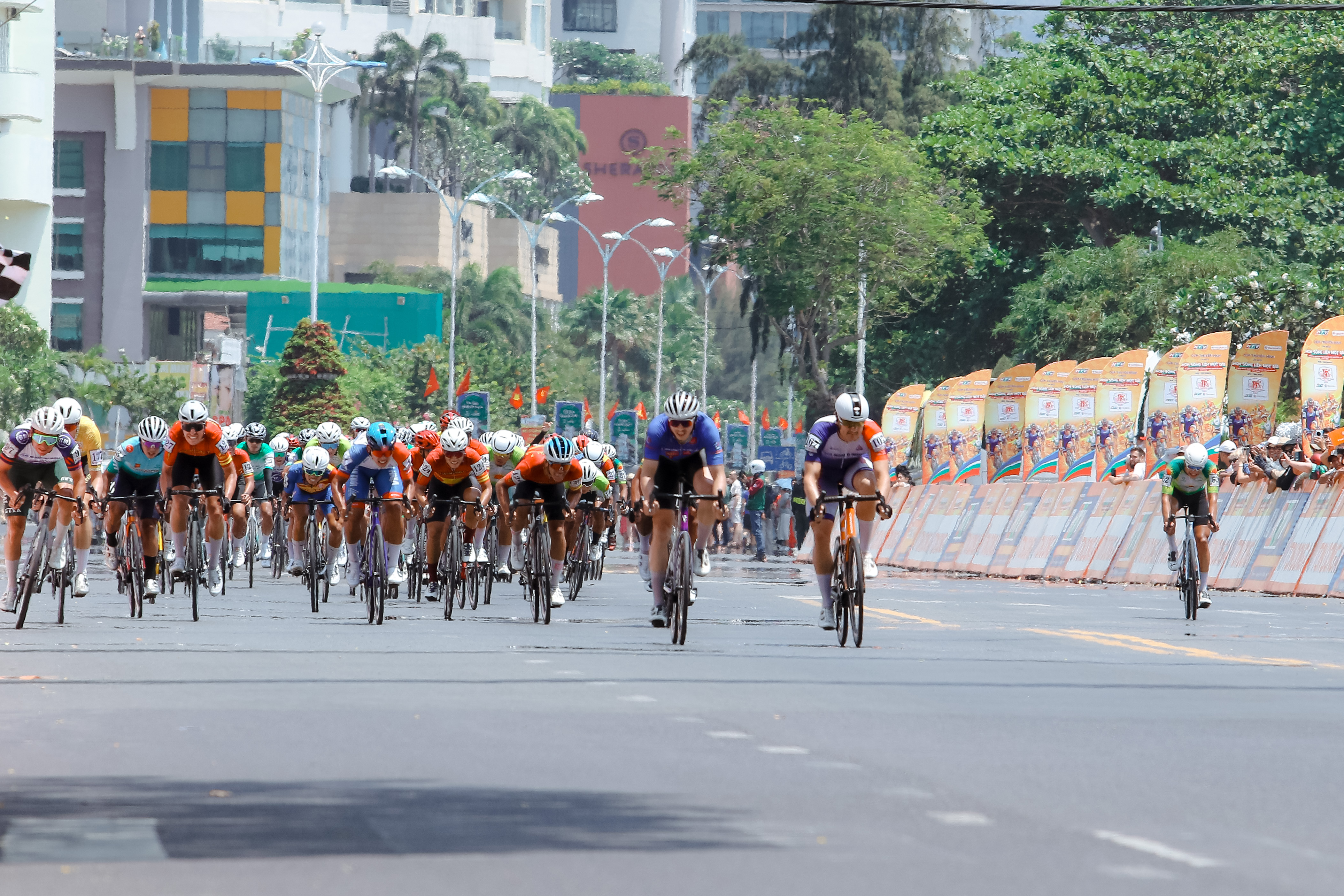 Sau khi đổ đèo Cả, đoàn đua hình thành lại một tốp đông cũng là lúc các tay đua có thứ hạng thấp tranh thủ tấn công tìm kiếm 2 giải thưởng dọc đường. Đầu tiên, tay đua trẻ Trần Thanh Quang (Nhựa Bình Minh TP.HCM) thoát đi một mình trong 8 km đến Sprint 1 giành chiến thắng. Sau đó, đến lượt một tốp 3 tay đua cũng tấn công cách điểm thưởng dọc đường thứ hai 7 km và Trịnh Đức Tâm (Tập đoàn Lộc Trời) rút thắng Võ Minh Gia Bảo (Quân khu 7) và Christoph Janssen (Đồng Tháp) giành chiến thắng.